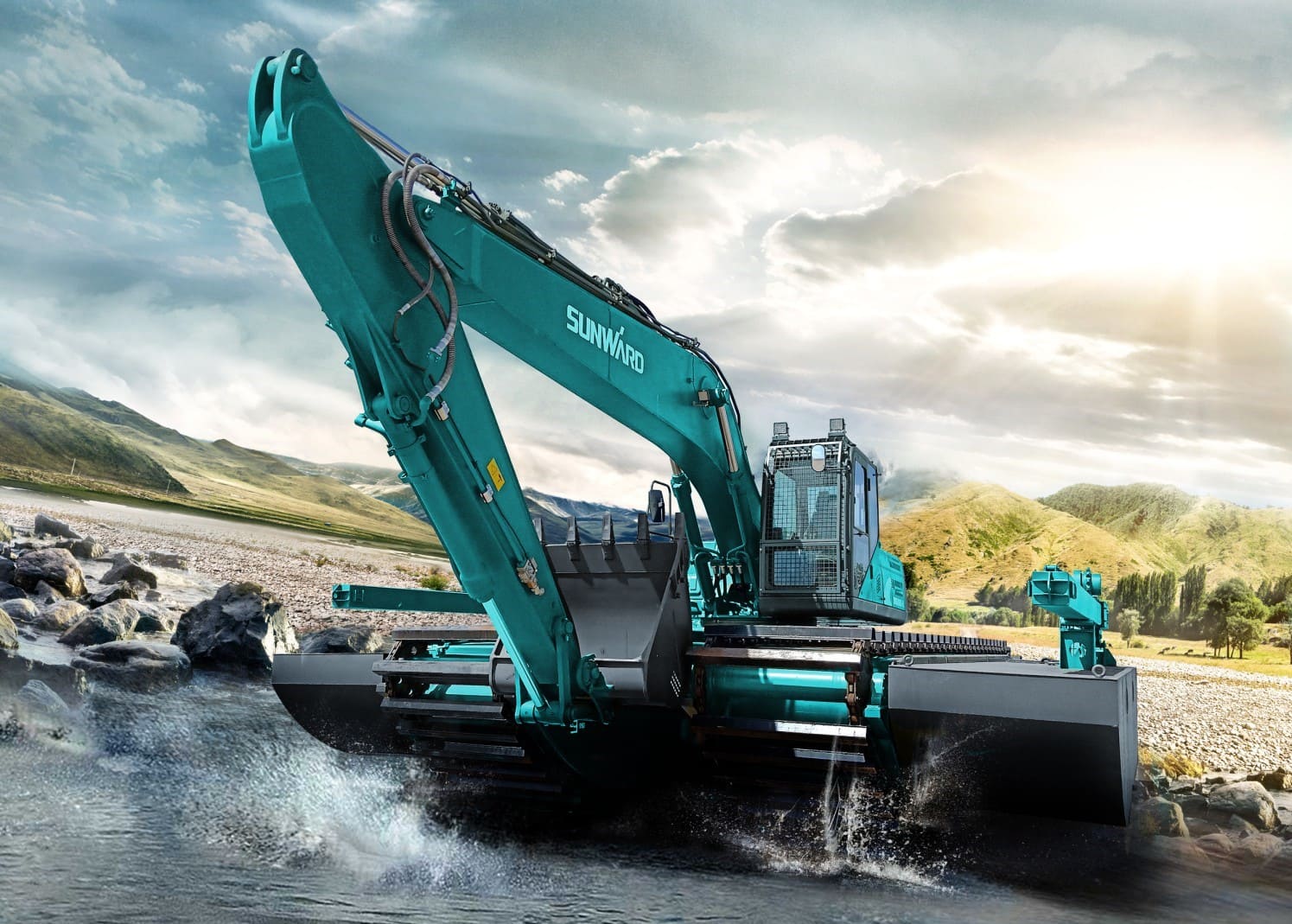 Универсальность. Конструкция с плавающей рамой-катамараном и герметичными гусеницами делает экскаватор одинаково эффективным на суше, болотистой местности и мелководье.