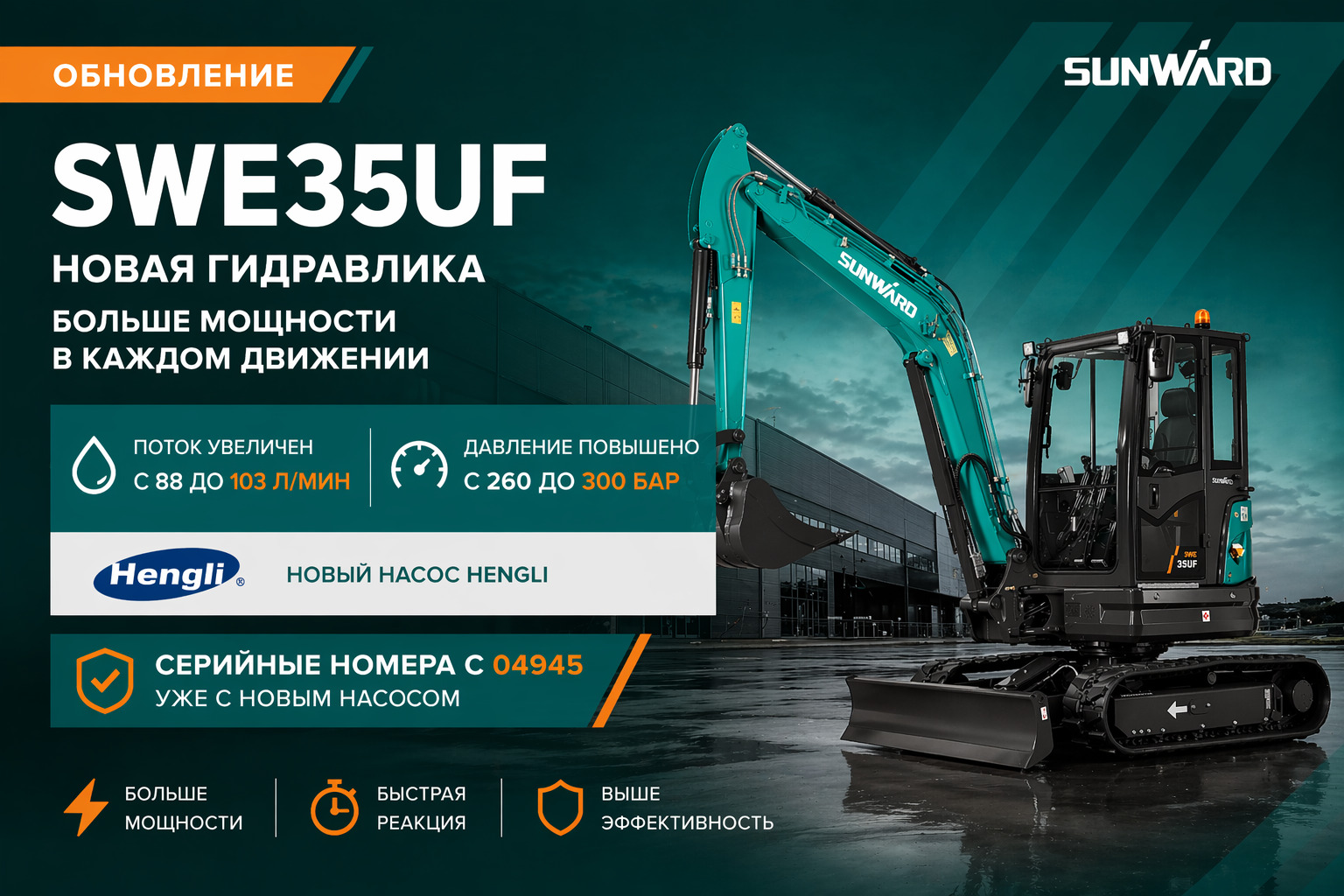 Такие изменения дают более быструю реакцию навесного оборудования, повышенную мощность копания и в целом более эффективную работу на объекте.